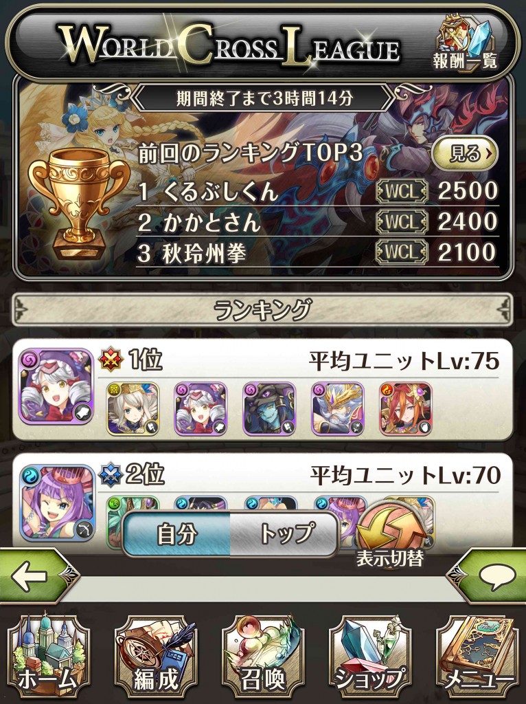 オンラインバトル『闘技場』の最高レーティング[WCL]に到達したユーザーが参戦可能なワクサガ最高峰のオンラインバトルリーグで、14日間を1シーズンとして常時開催されます。