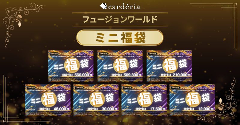フュージョンワールドはトレーディングカード市場でもコレクター人気の高いタイトルの一つです。こうした市場背景を踏まえ、1周年記念企画として高額商品を含むラインナップで「フュージョンワールド」ミニ福袋を数量限定で発売します。